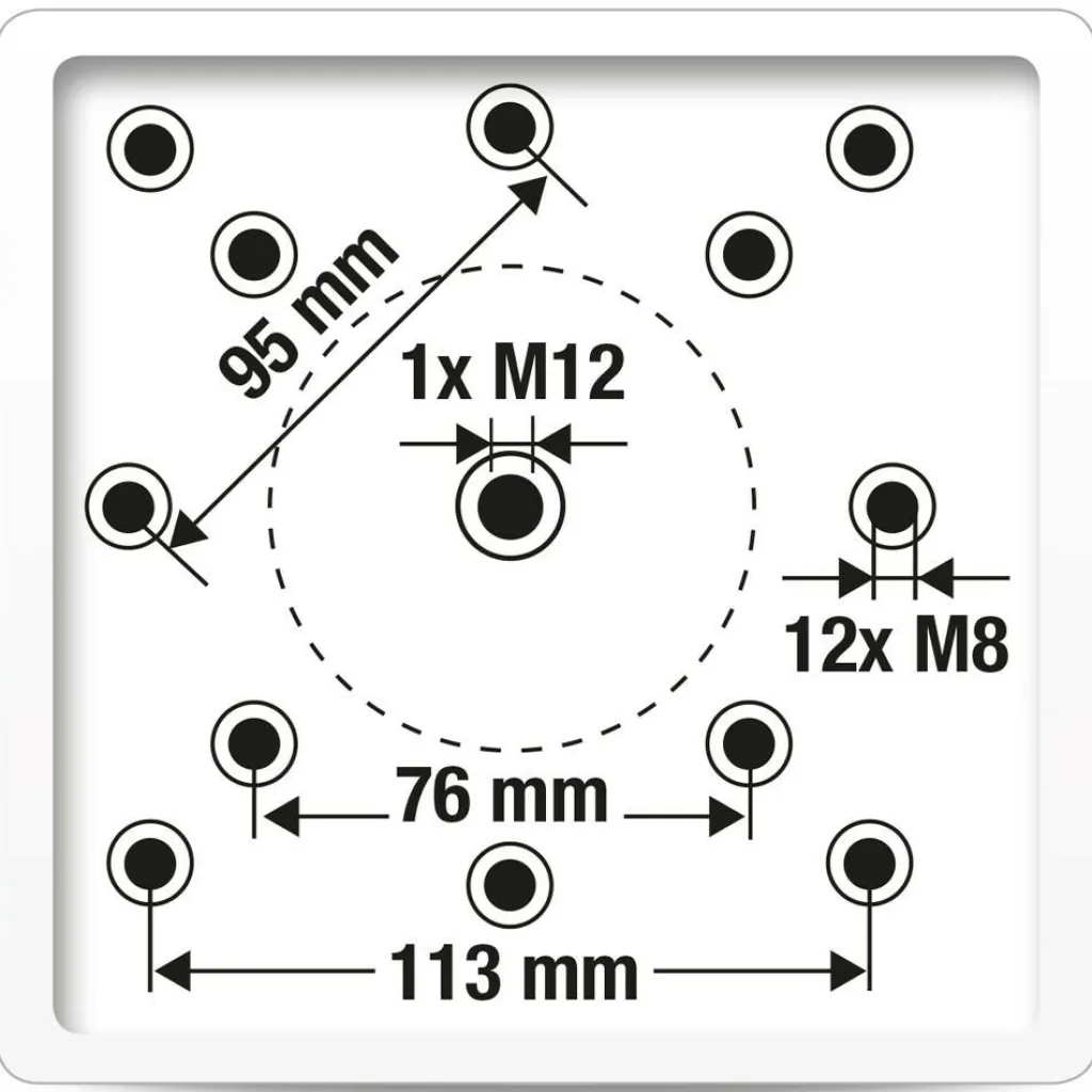 De parasolvoet wordt geleverd met een duidelijke montagehandleiding en is geschikt voor zweefparasols tot 3 meter of tot een diameter van 3,5 meter met een gat afstand van 113, 95 of 76 mm. De Platinum parasols Challenger, Falcon en Hawaï kunnen rechtstreeks op de ingraafvoet worden geplaatst. Door de Platinum adapterplaat op de voet te monteren kan de ingraafvoet ook gebruikt worden voor parasols met afwijkende maten met een gat afstand tussen de 6,4 cm en de 11,3 cm.