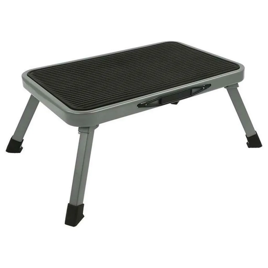 De ProPlus Opvouwbare opstap is een ideale oplossing voor het eenvoudig in- en uitstappen bij caravans, campers en vouwwagens. Uiteraard is het opstapje ook te gebruiken in huis of buiten. Het frame is gemaakt van stevige stalen buizen, hierdoor heeft de opstap een draagvermogen van 150 kilogram. Op de trede is een antislip-laag geplaatst.