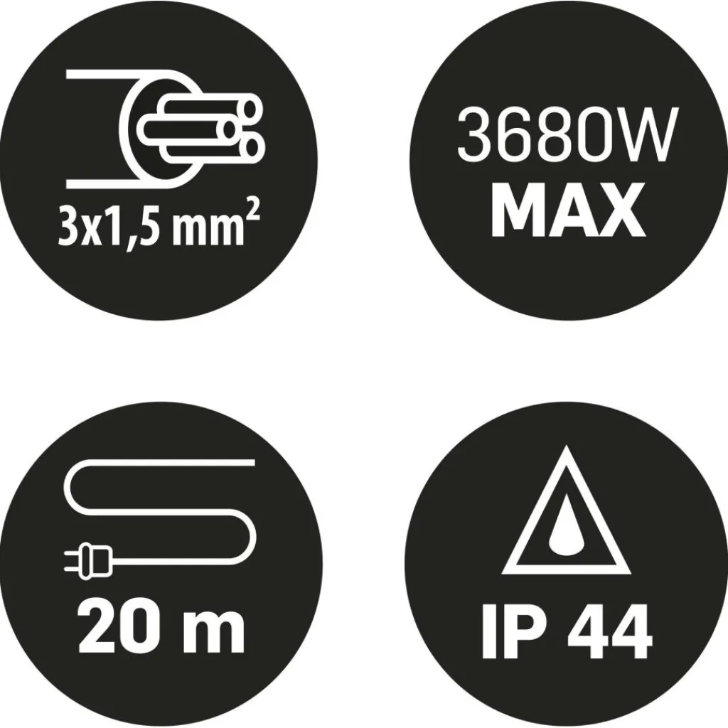De Q-link verlengkabel heeft een lengte van 20 meter. Daarnaast is de kabel spatwaterdicht en voorzien van randaarde.