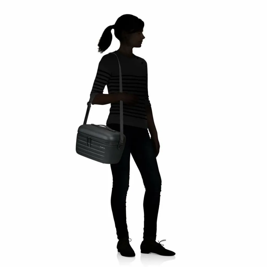 De Samsonite StackD beautycase is voorzien van een eigentijdse strakke uitstraling. De beautycase is gemaakt van duurzaam materiaal, wat ook nog eens waterafstotend is. Aan de binnenzijde bevinden verschillende organizer-elementen en een uitneembare make-up tas. Aan de achterzijde bevind zich een smart-sleeve, hiermee kunt u de toilettas makkelijk bevestigen op een koffer trekstang.