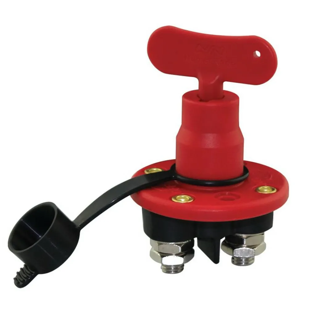 Met de Nuova Rade hoofdstroomschakelaar 250A beschermt u uw camper, caravan of boot. Deze elektrische hoofdschakelaar is ideaal voor het beheren van apparaten met een hoge stroomsterkte. Met een verwijderbare rode sleutel biedt het niet alleen gemak maar ook extra veiligheid voor uw voertuig. Met dit product voorkomt u dat stille gebruikers uw startaccu leegtrekken als uw motor niet draait. Als u de knop op de schakelaar omdraait kan er geen stroom meer afgetapt worden van de accu.