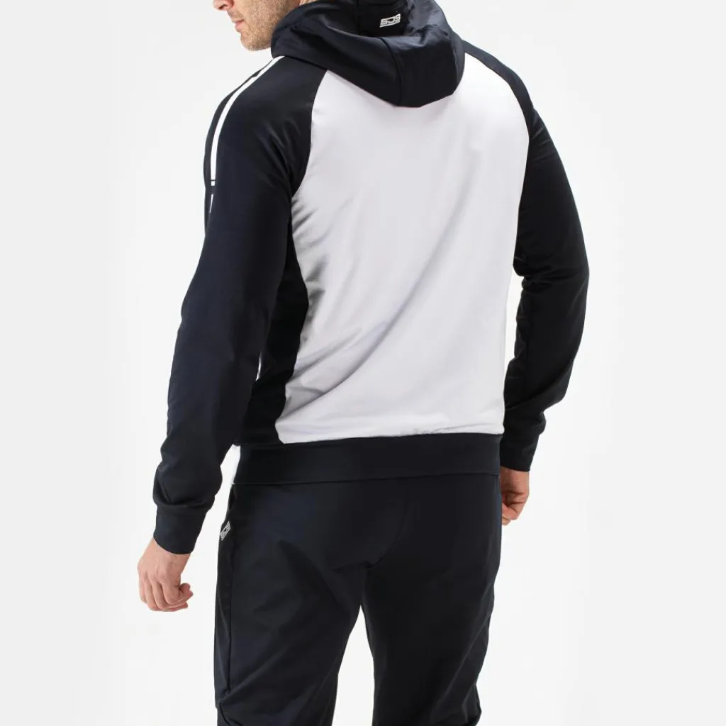 Dit Sjeng Sports Anzel trainingsjack is een comfortabel jack dat u voldoende bewegingsvrijheid biedt dankzij de powerstretch. Over de borst en langs de schouders lopen siliconen stripings. Daarnaast is dit jack voorzien van zakken met ritssluiting die afgesloten zijn met seal-on tape.
