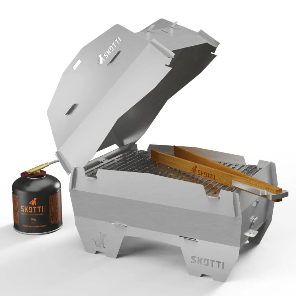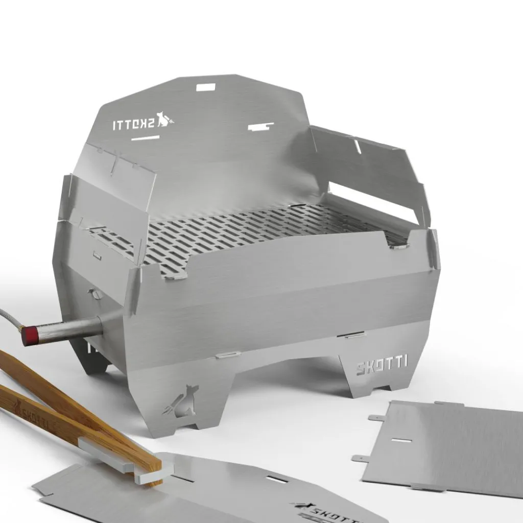 De SKOTTI Cap deksel maakt het barbecueën op winderige plekken gemakkelijker. Afhankelijk van de situatie en wat u wilt grillen, kan de deksel ook multifunctioneel worden gebruikt. Met een afgesloten bovenkant en één geopende zijkant verandert de Cap uw SKOTTI barbecue bijvoorbeeld om in een pizzaoven. Het handvat van de SKOTTI Cap kan ook dienen als grilltang.