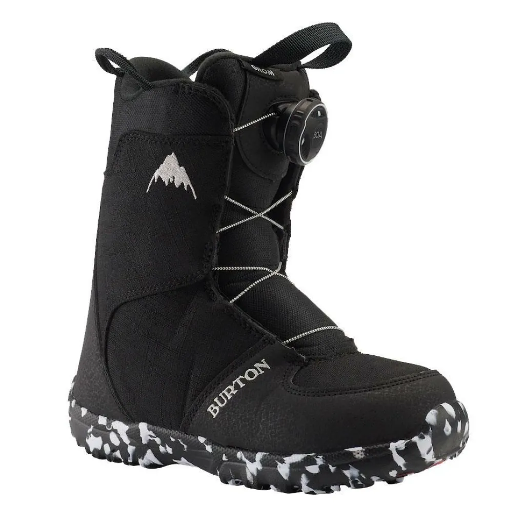 De Burton Grom BOA snowboardschoenen hebben een BOA sluitsysteem. De voering houdt de voeten droog en warm en de buitenzool biedt extra grip.