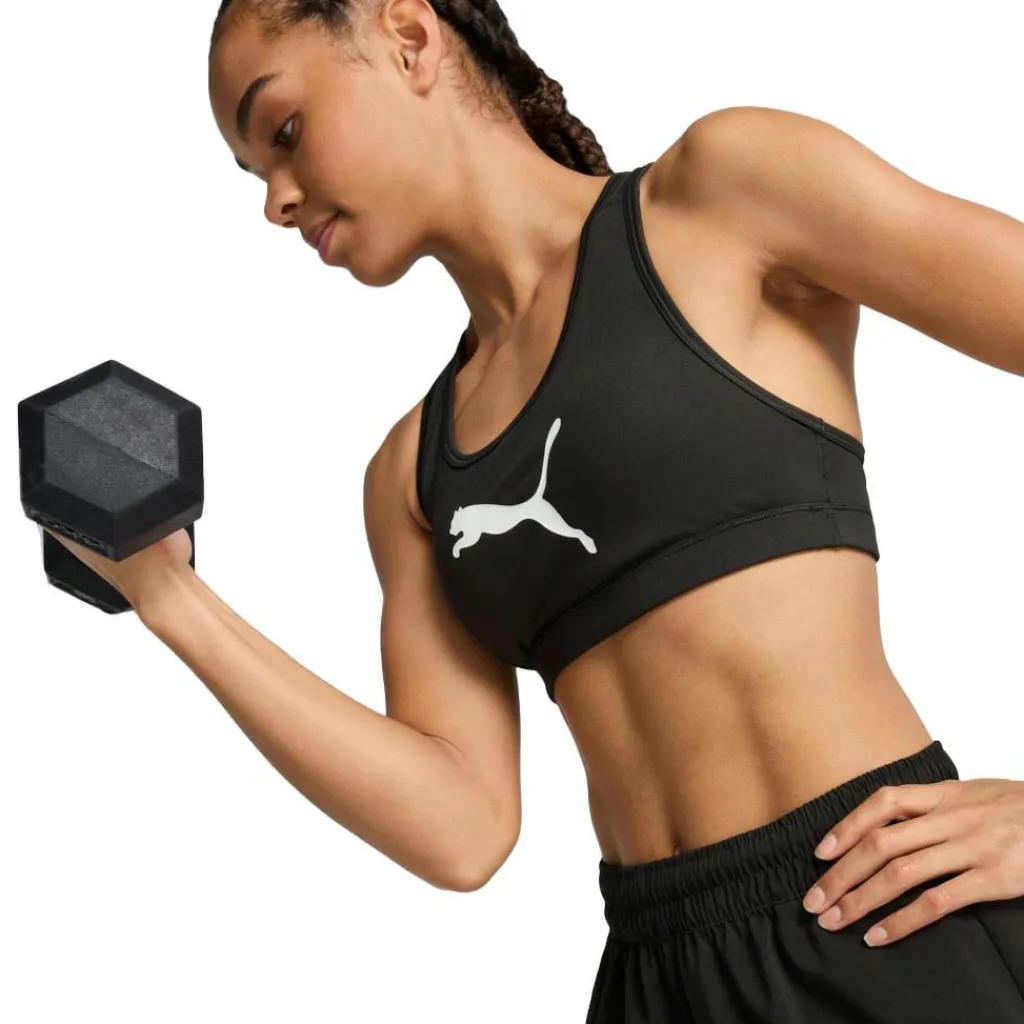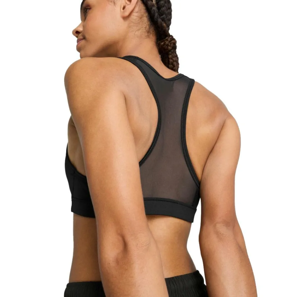 De Puma 4KEEPS sport bh heeft een achterkant van mesh, waardoor er een aangename luchtstroom is. De padding is uitneembaar, zodat de stijl naar wens kan worden aangepast en het vochtafvoerende materiaal draagt bij aan een comfortabel droog gevoel gedurende uw training.