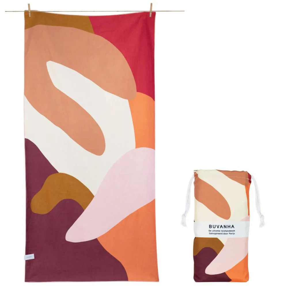 Het Buvanha Paris 01 strandlaken is gemaakt met speciale microvezels, dat ervoor zorgt dat er geen zand aan het strandlaken blijft zitten. Dit handige strandlaken heeft een hip design en kan 1 liter water absorberen. Het laken droogt snel en heeft een handig compact tasje.