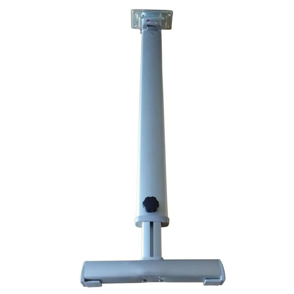 Dit model met de verstelbare T-voet kan door middel van een draaiknop worden verlengd. Wanneer de tafel ingeklapt is ligt de tafelpoot gelijk met het tafelblad, hierdoor zijn er geen uitstekende delen en kan deze gemakkelijk opgeborgen worden.
