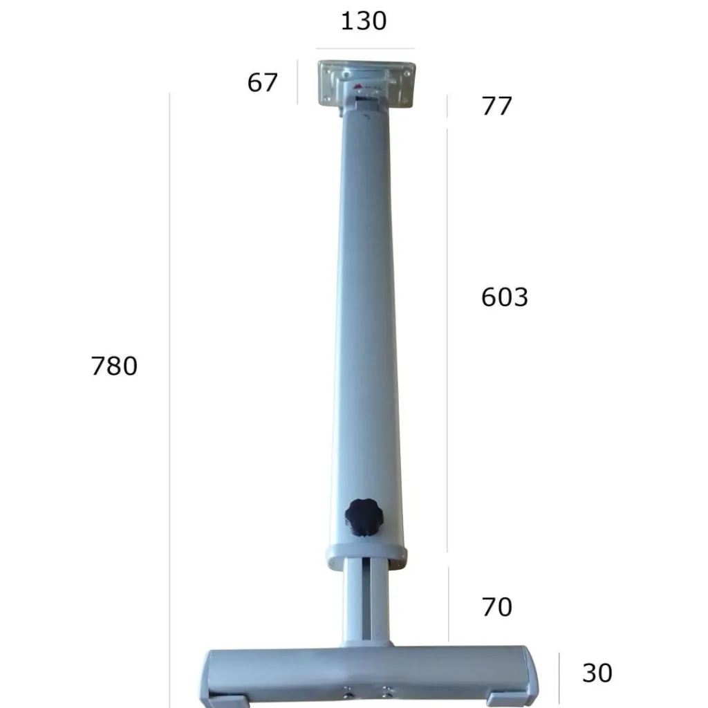 Deze tafelpoot is ingeklapt 72 centimeter hoog en volledig uitgeklapt is dit 80 centimeter.