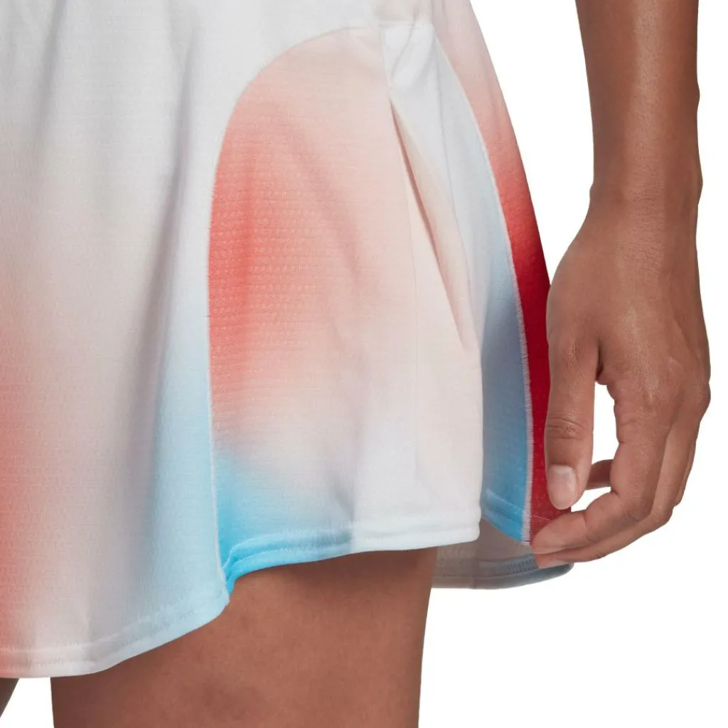 De adidas Mel Match tennisrok heeft een elastische tailleband. De rok is voorzien van white black en vivid red kleuren. Tevens is de elastische tailleband geperforeerd waardoor de rok ademt. De rok zit comfortabel en biedt veel bewegingsvrijheid.