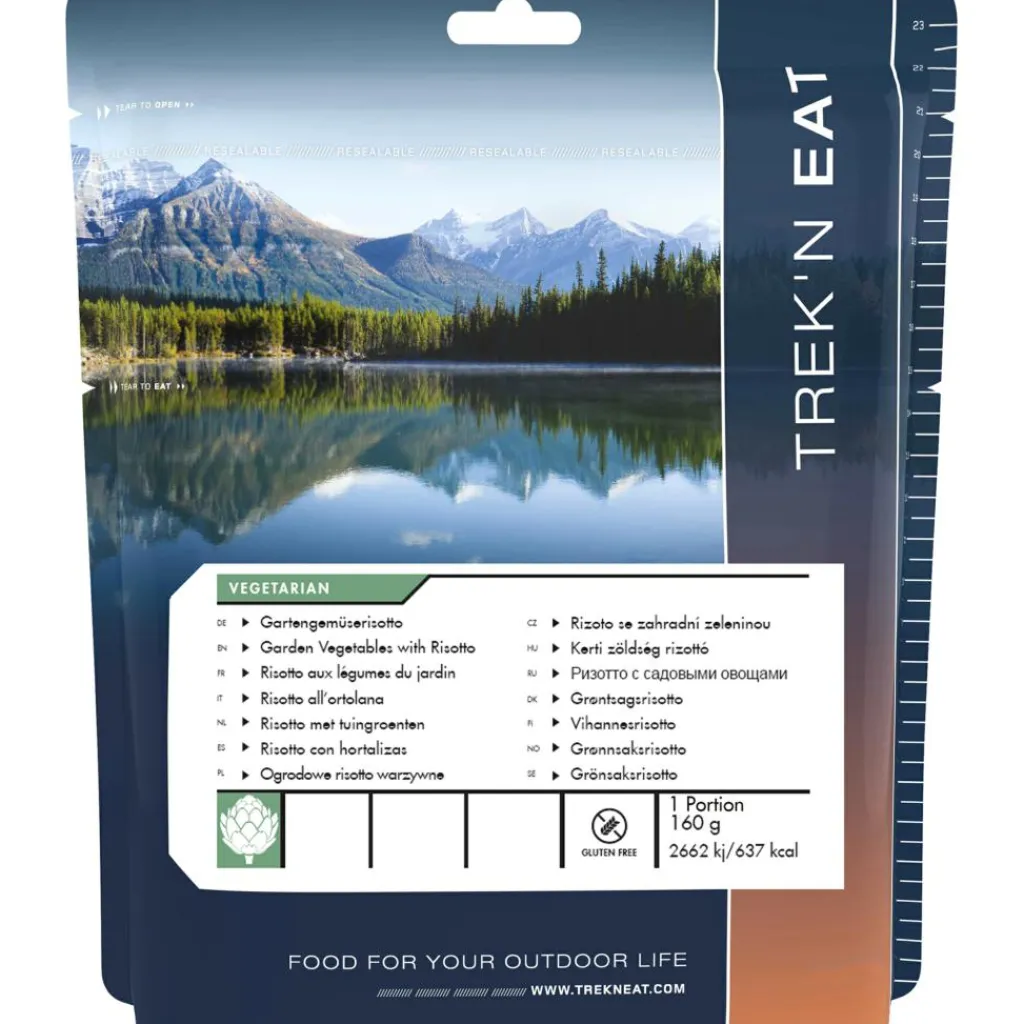 De Trek ’n Eat Garden Vegetables with Risotto is een vegetarische maaltijd die snel en makkelijk klaar is om u voldoende energie te geven tijdens uw outdoor avonturen. Nadat u kokend water heeft toegevoegd, kunt u al genieten van voedzaam eten.