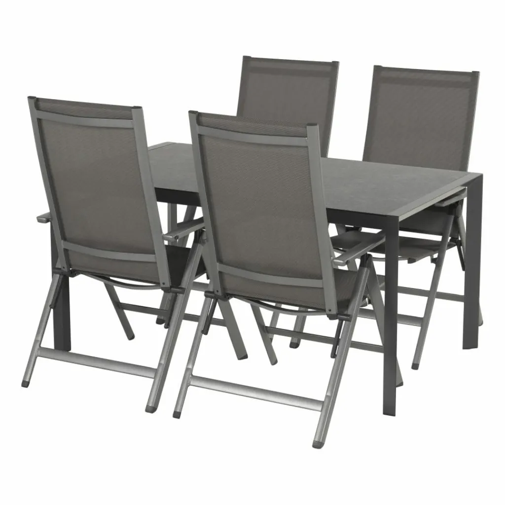 De Hartman California Aruba tuinset bestaat uit een moderne tuintafel met 4 verstelbare tuinstoelen. De rechthoekige tuintafel heeft een stevig aluminium frame met een krasbestendig HPL blad. De lichtgewicht stoelen zijn gemaakt van aluminium, de zitting en rugleuning zijn van een textileen weefsel. Hierdoor is deze tuinset van Hartman duurzaam en onderhoudsvrij.