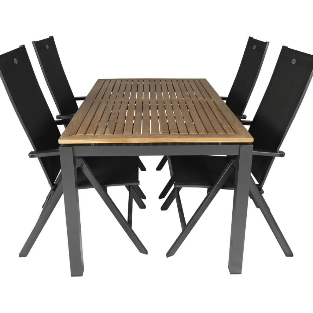 De Hartman Sonata 160 Aruba verstelbaar tuinset bestaat uit een diningtafel met vier verstelbare stoelen. Deze Hartman Sonata tuintafel is gemaakt met een aluminium onderstel en een teakhouten tafelblad. De Hartman Aruba verstelbare tuinstoelen hebben een aluminium frame en een bekleding van textileen. Door het gebruik van deze duurzame materialen hebben de Hartman tuinstoelen weinig onderhoud nodig en zijn ze weerbestendig. De complete set kunt u buiten laten staan, maar bij de tafel adviseren we om deze minimaal een keer per jaar te behandelen om er lang plezier van te hebben.
