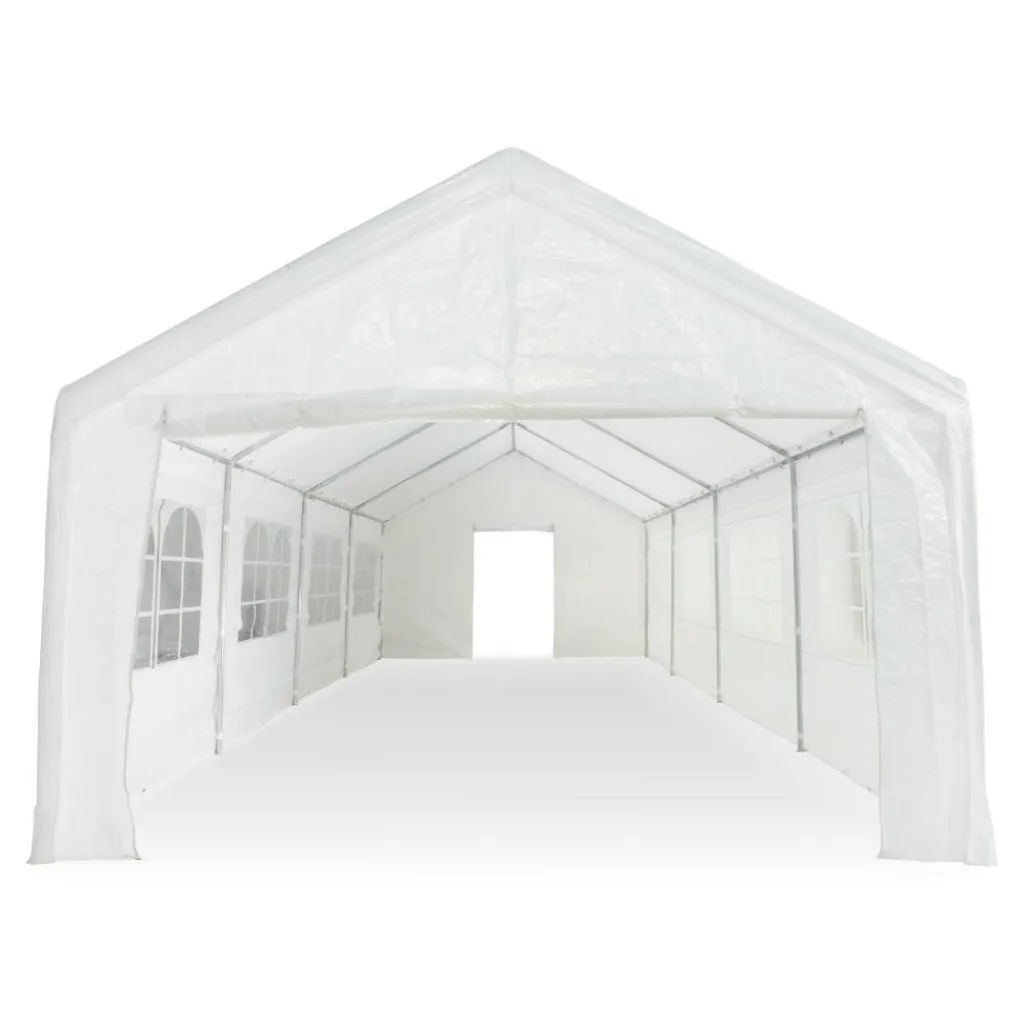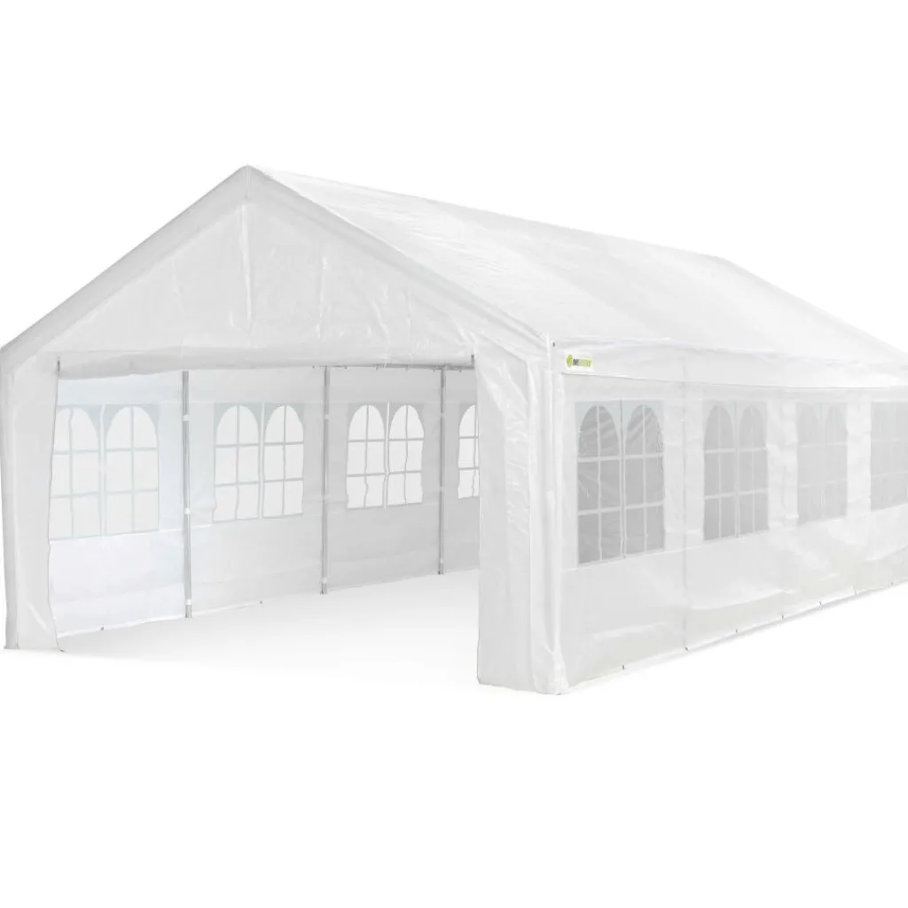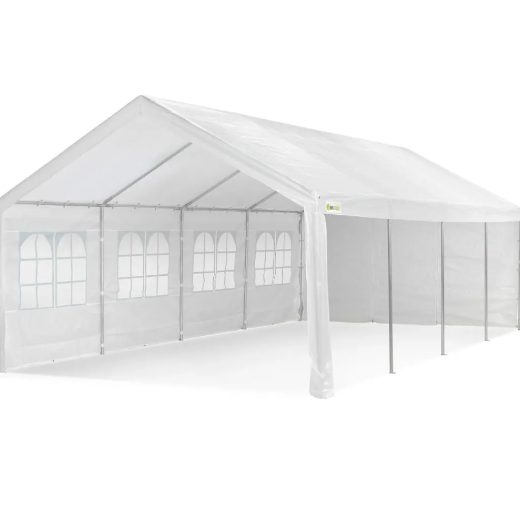 Zoekt u een partytent voor een tuinfeest, open dag of vakantie? De DWS Fiësta partytent biedt 32 m² beschutte ruimte met een frisse, neutrale uitstraling. Dankzij deuropeningen aan beide kopse kanten en de meegeleverde zijwanden bepaalt u zelf hoeveel beschutting en doorloop u wilt, terwijl het stevige stalen frame en het waterafstotende doek zorgen voor betrouwbare dekking bij incidenteel gebruik.
