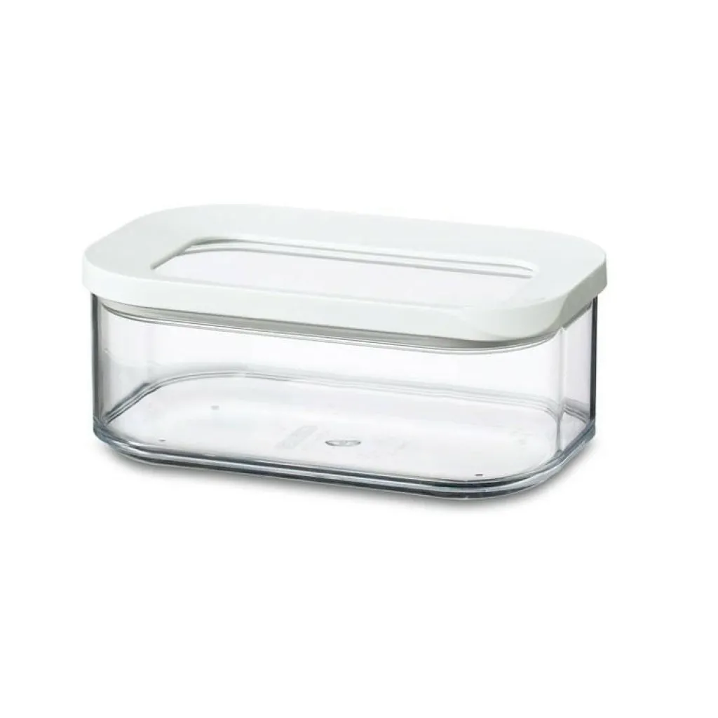 De Modula kunststof bewaardozen van Mepal zijn stapelbaar, stabiel en geschikt voor het bovenste rek van de vaatwasser. De Modula bewaardozen sluiten aroma dicht af dankzij de aparte afdichting. Deze rechthoekige voorraaddoos heeft een inhoud van 425 milliliter. Handig voor het bewaren van etenswaren. De Modula bewaardoos is bovendien vaatwasserbestendig.