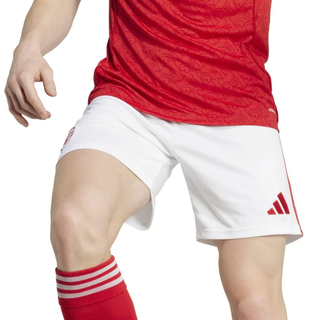 Deze adidas Arsenal thuisshort 25 – 26 voor heren is gemaakt van zachte materialen die voor voldoende bewegingsvrijheid zorgen. De short heeft een elastische tailleband voor meer comfort en het materiaal droogt snel.