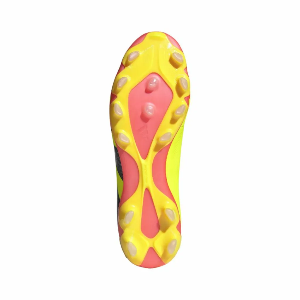 De adidas Predator Pro MG voetbalschoenen voor heren zijn gemaakt om mee te scoren. Op het zachte en flexibele HybridTouch 2.0 bovenwerk zijn Strikeskin elementen van rubber. Door die rubberen vinnen ontstaat de perfecte grip en controle op de bal en is een nog krachtiger schot mogelijk. De Controlframe 2.0 buitenzool is zo ontwikkeld dat zowel op natuurgras als op kunstgras optimale wendbaarheid wordt gegarandeerd. Deze adidas voetbalschoenen bestaan voor minimaal 20% uit gerecyclede materialen.