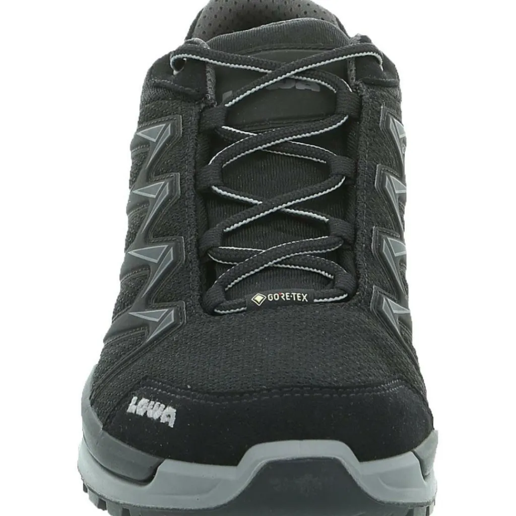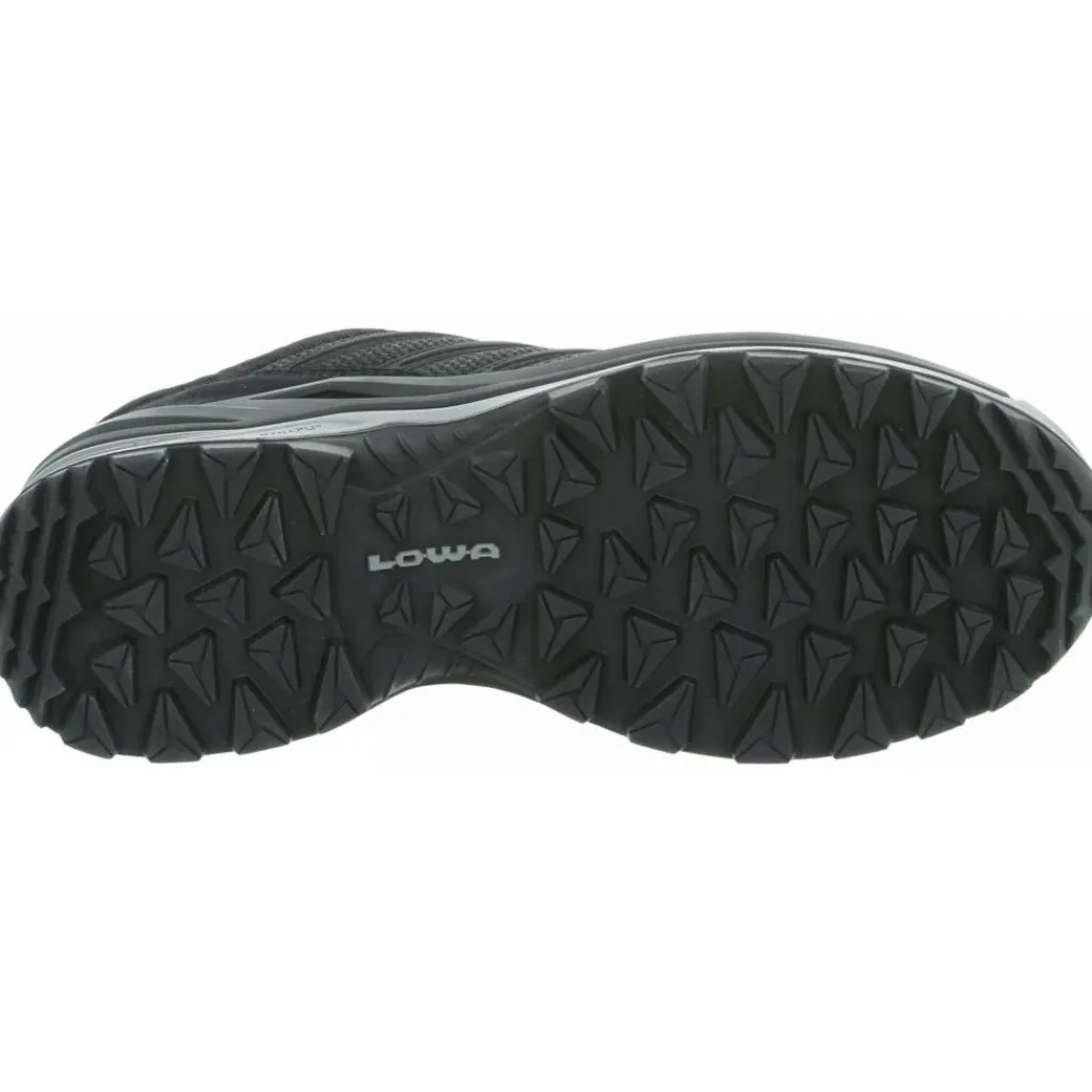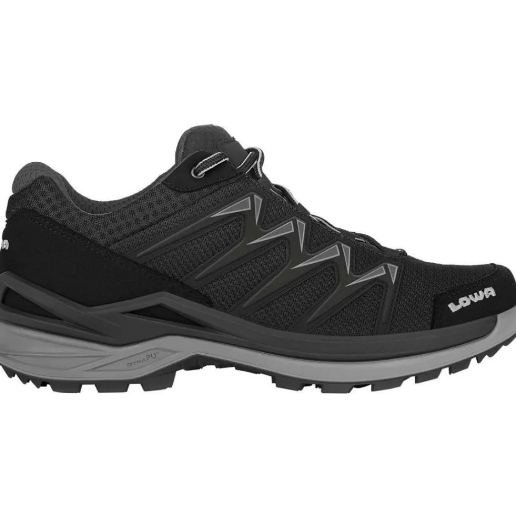 De Lowa Innox Pro GTX Lo wandelschoenen voor heren in de kleur black grey zijn ontwikkeld met een speciale frameconstructie die stabiliteit geeft. Deze Lowa wandelschoenen zijn flexibel en ondersteunen daardoor het natuurlijk afrolgedrag. Het membraam is van GORE-TEX waardoor ze waterdicht, winddicht en ademend van aard zijn. Door het bovenmateriaal van textiel en kunststoffen zijn de wandelschoenen lekker soepel en zitten ze heel comfortabel.