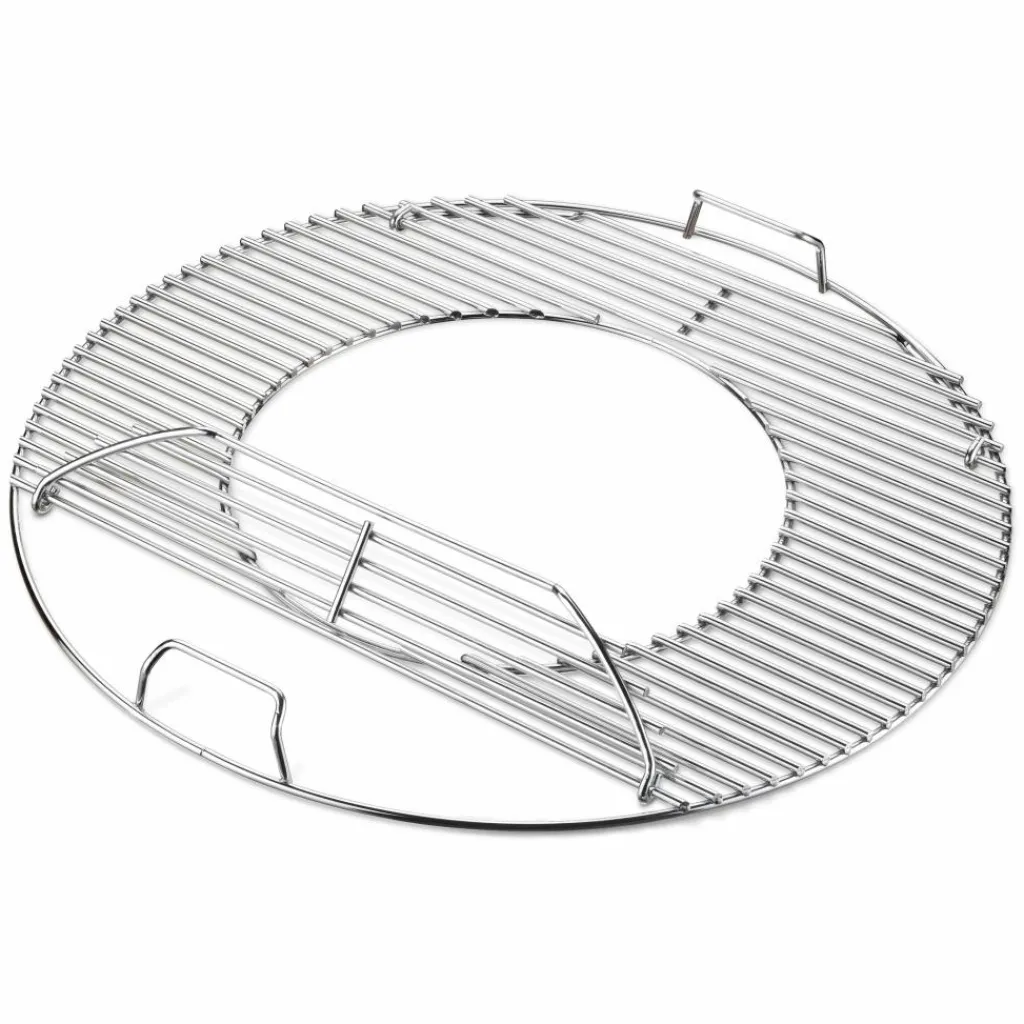 Het Weber GBS grillrooster is speciaal ontworpen voor Weber houtskoolbarbecues met een diameter van ø 57 cm. Dit rooster heeft een verwijderbare cirkel in het midden, wat ideaal is bij het bereiden van grotere gerechten en het gebruik van diverse Weber-accessoires, zoals een pizzasteen of wok. Dankzij het handige scharnier kunt u eenvoudig extra houtskool toevoegen wanneer dat nodig is.