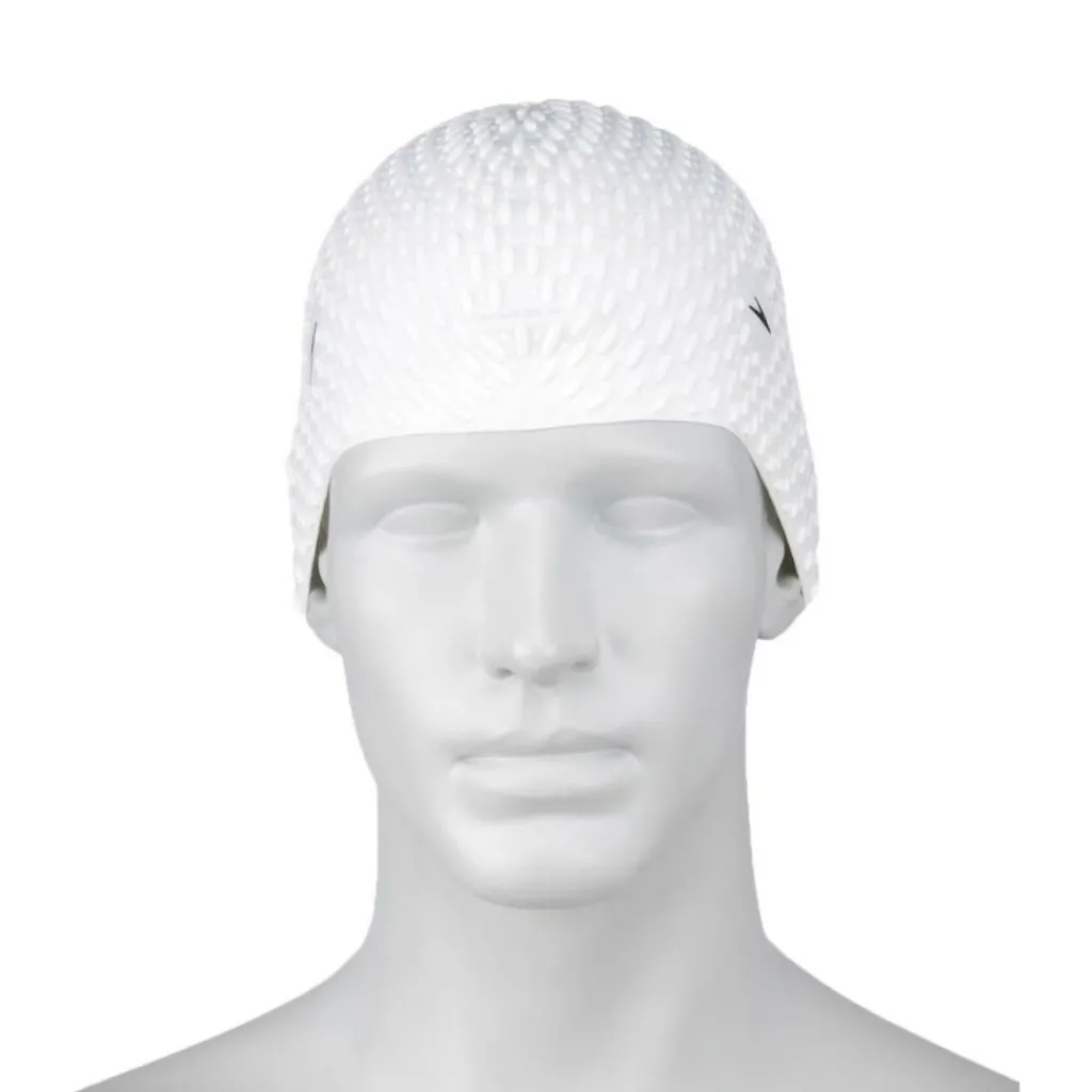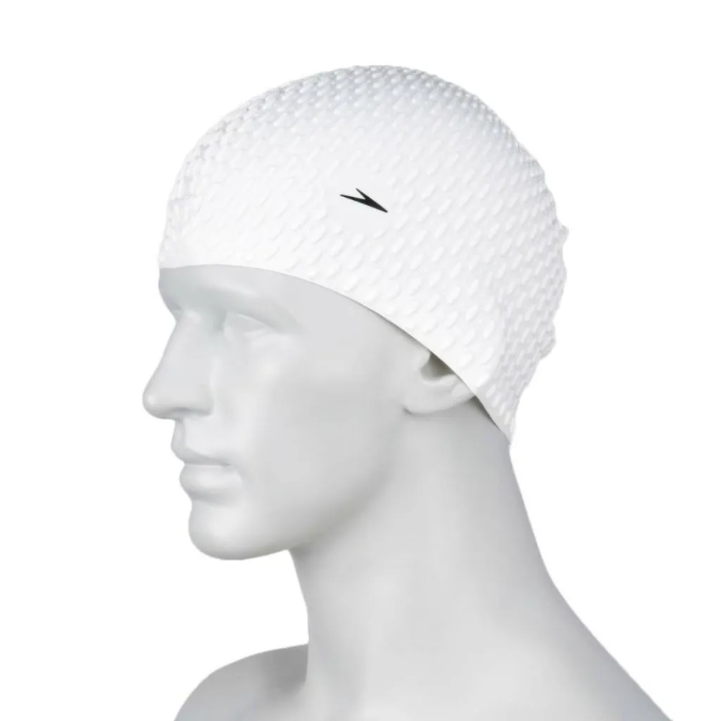 De Speedo Bubble Cap badmuts is ideaal voor training bij lage temperaturen of in open water. Deze Speedo badmuts van siliconen beschermt het haar tegen chloor, is eenvoudig op te doen en comfortabel om te dragen.