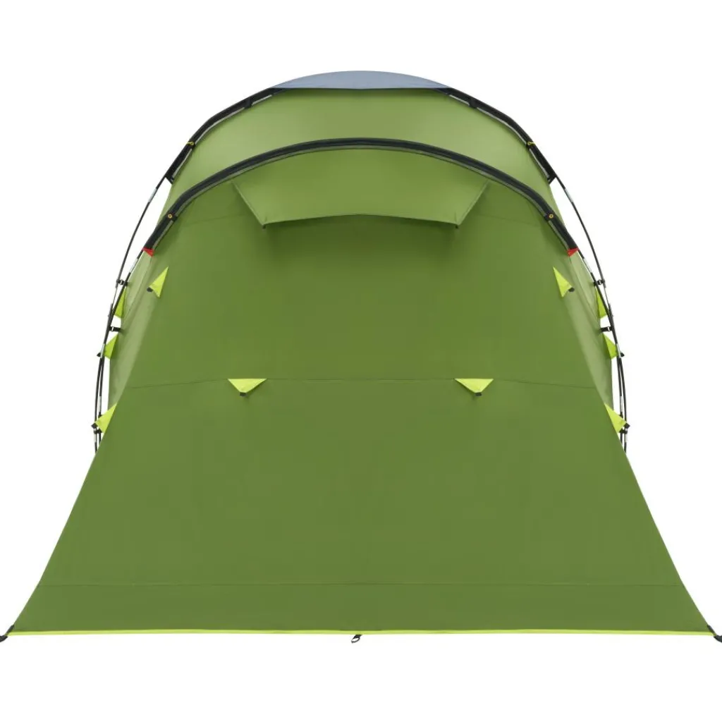Het buitendoek is van duurzaam polyester met een waterkolom van 4.500 mm. Samen met de strakke afspanning houdt dit de leef- en slaapruimte droog wanneer er langdurig regen valt. De glasfiber stokken zijn flexibel en vangen windstoten op, wat het opzetten eenvoudig maakt en de stabiliteit ten goede komt. In de leefruimte ligt een vast PE‑grondzeil. Dit grondzeil sluit randen af, helpt tegen tocht, opspattend water en ongewenste insecten. De binnententen zijn van ademend polyester, prettig voor een gelijkmatig binnenklimaat tijdens warme nachten. Het tentdoek is brandvertragend, wat de veiligheid vergroot en extra gemoedsrust geeft op de camping.