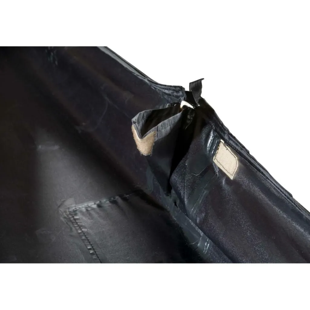 Het buitendoek en de binnententen zijn uitgevoerd in technisch katoen (katoen/polyester) van 210 g/m². Omdat dit materiaal ademt en minder opwarmt in de zon, blijft de tent merkbaar koeler en ontstaat er minder snel condens. Het vaste kuipgrondzeil is gemaakt van Oxford polyester. Dit stevige geweven polyester is slijtvast, eenvoudig schoon te houden en met een waterkolom van 5.000 mm goed bestand tegen een nat grasveld of een zomerse bui. De constructie bestaat uit TPU-luchtbogen met een diameter van 14 cm. Dit geeft de tent een zeer stabiele basis, terwijl u hem toch snel kunt opzetten zonder tentstokken.