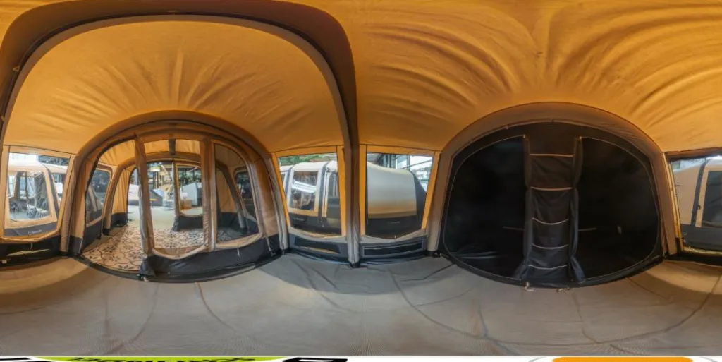 Voor een constant frisse luchtstroom beschikt de tent over het Air-vent ventilatiesysteem met Ground Air Control: lucht komt laag binnen en voert warmte en vocht hoog weer af. Daardoor is het binnenklimaat stabieler, ook bij wisselend weer. Verduisterende gordijnen met variosysteem en ritsen maken de leefruimte snel privacy-proof, terwijl kabeldoorvoeren aan zowel de linker- als rechterzijde (doorlopend tot de slaapcabines) zorgen voor veilig en netjes weggewerkte stroom.