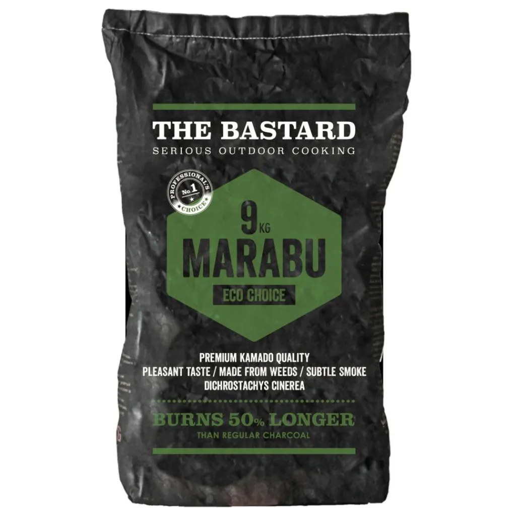 The Bastard Marabu houtskool zit in een zak van 9 kg en is afkomstig van de Marabu boom in Cuba. Deze houtskool heeft een stabiele brandkwaliteit, een lange brandduur en zorgt voor een fijne rooksmaak.