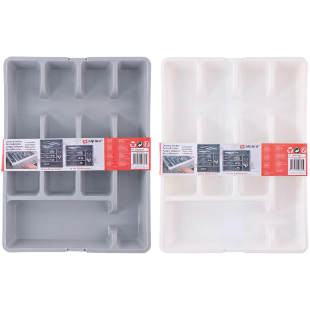 Deze Alpina Bestekbak heeft in totaal 5 vakken. Maar u kunt dit uitbreiden naar 7 vakken als u de bijgeleverde aanzetten stukken eraan schuift. De bestekbak is gemaakt van kunststof en is hierdoor eenvoudig schoon te maken.