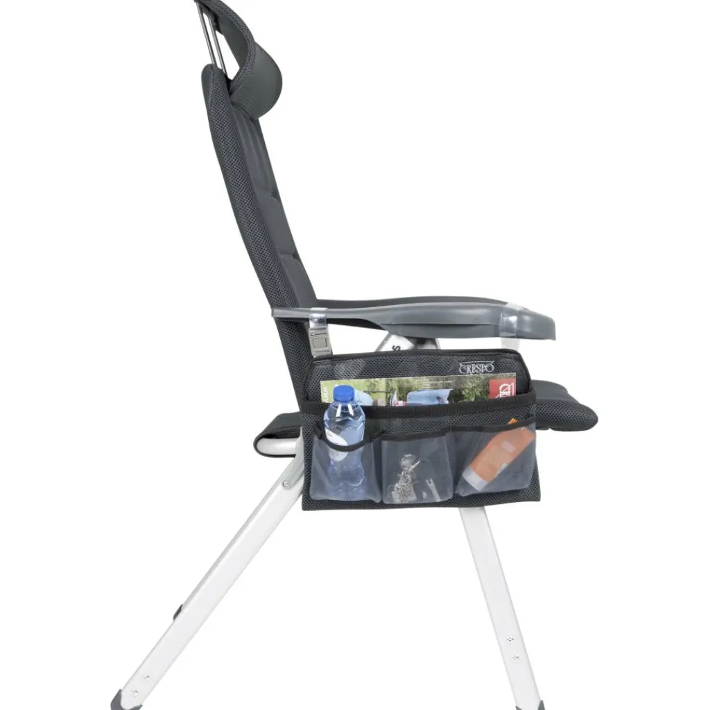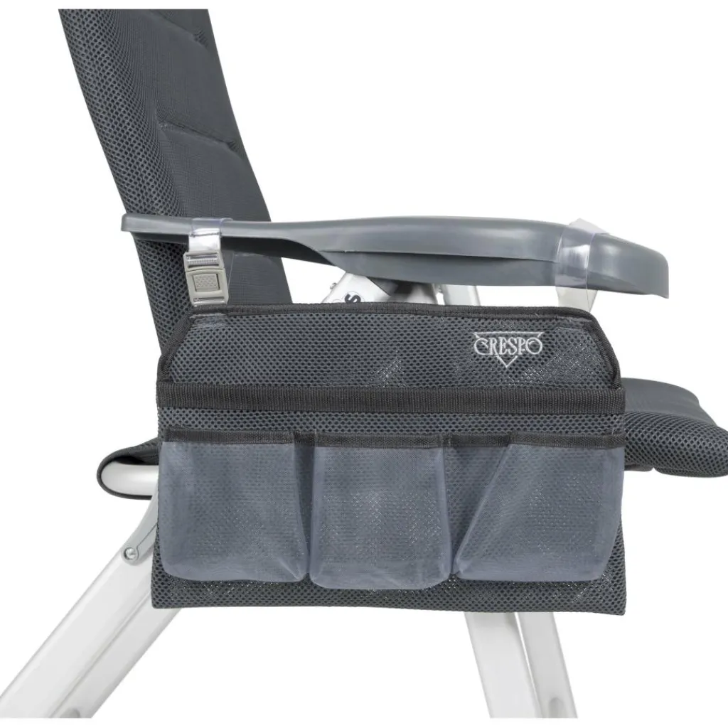 Handige Crespo 86 Air-Elite stoelorganizer voor aan de armsteun van uw campingstoel. Deze Crespo organizer is ideaal voor bij de tent of op het strand. Met vier opbergvakken kunt u bijvoorbeeld een tijdschrift, blikje drinken, leesbril en telefoon kwijt. Met behulp van een klinkgesp en kunststof lus eenvoudig aan de armsteun te bevestigen.