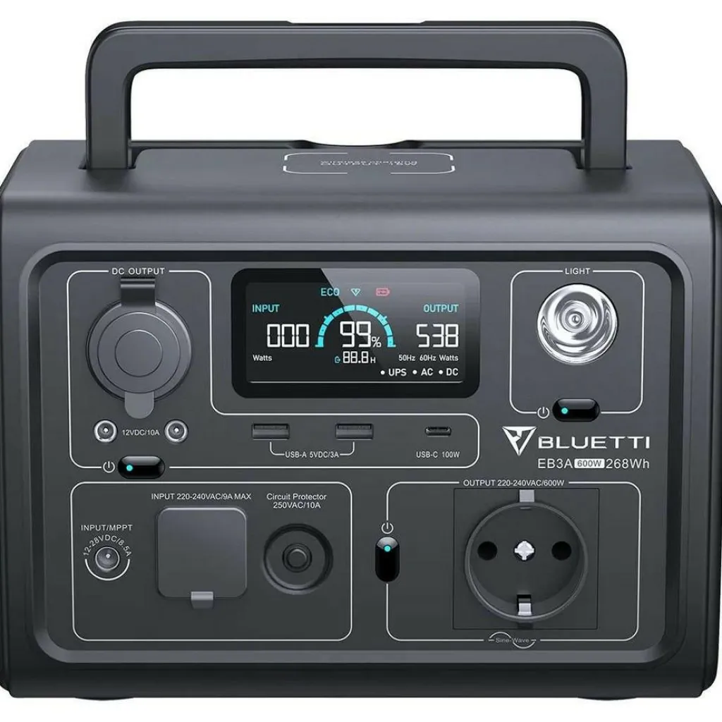 De Bluetti EB3A Portable powerstation is de ideale oplossing voor al uw stroombehoeften onderweg. Met een 268Wh lithium-ionbatterij en een maximaal uitgangsvermogen van 600W is de EB3A betrouwbaar en veelzijdig. Dankzij het compacte ontwerp is deze powerstation gemakkelijk draagbaar. Met meerdere uitgangen, waaronder AC, USB, DC en draadloos laden, kunt u verschillende apparaten tegelijkertijd opladen. Verder is de accu compatibel met zonnepanelen, biedt deze Powerstation een betrouwbare stroombron, zelfs in afgelegen gebieden.