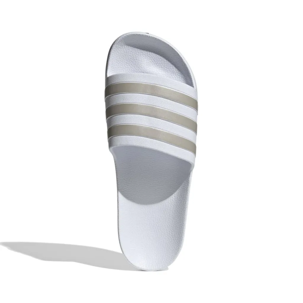 De adidas Adilette Aqua slippers in de kleur cloud white platinum metallic voelen licht aan en drogen snel. Ze zitten heel comfortabel dankzij het Cloudfoam voetbed.