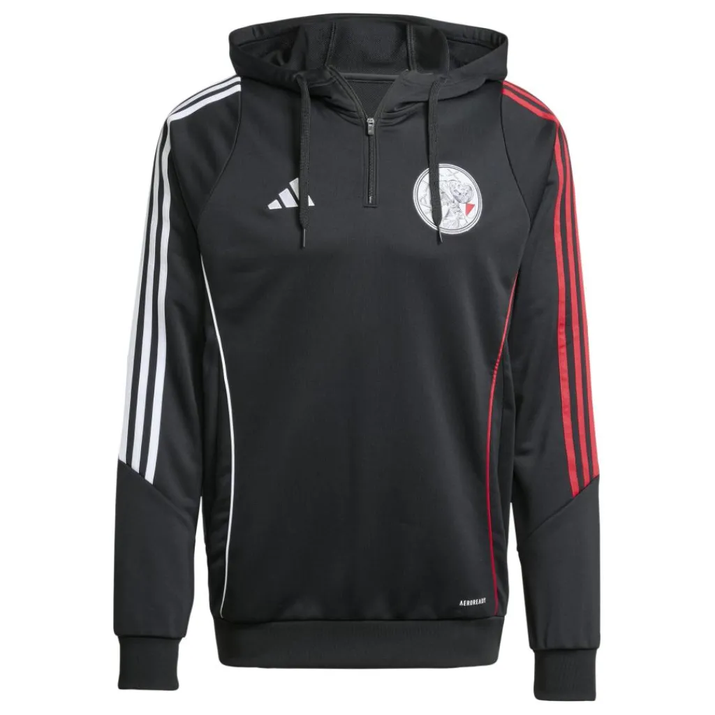De adidas Ajax Tiro 24 hoodie voor heren is een comfortabele warme trui die gemaakt is van hoogwaardige materialen. Door deze materialen die een sneldrogende eigenschap hebben en de ruime pasvorm, wordt er een ultiem draagcomfort geboden.