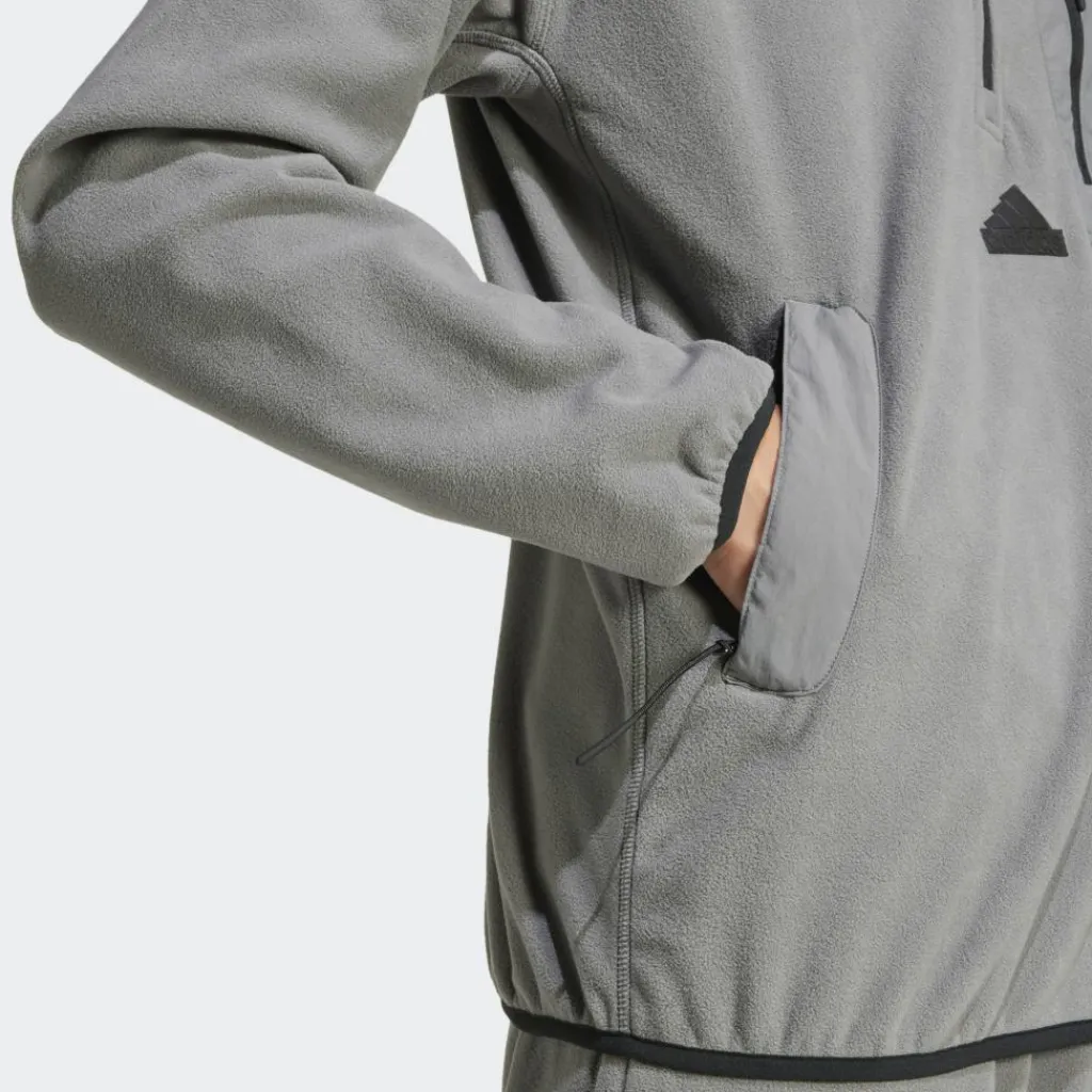Door de 1/4 ritssluiting kunt u deze City Escape Polar fleece sweater van adidas goed laten ademen als u het te warm heeft. Verder zijn de praktische zakken voorzien van een rits, zodat u niet uw sleutels kunt verliezen.