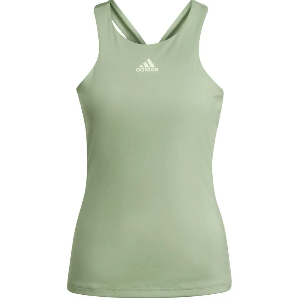 De adidas Y tennis tanktop voor dames heeft de kleur magic lime. Het shirt is gemaakt van gerecycled materiaal en heeft veel bewegingsvrijheid.