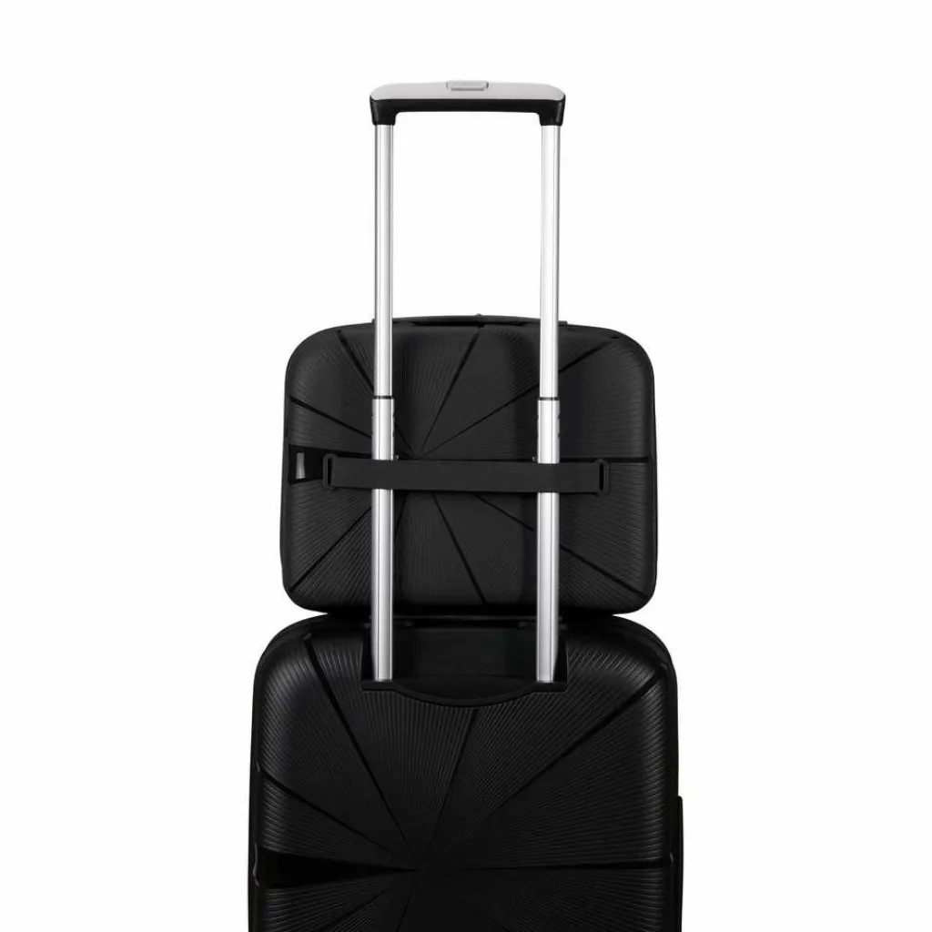De American Tourister Starvibe beautycase heeft een ideaal formaat om mee op reis te nemen. Draag het over de schouder of bevestig het via de smart sleeve aan uw koffer. De binnenzijde is afgewerkt met lusjes voor het opbergen van make-up accessoires en er is een vak met rits voor essentiële dingen.