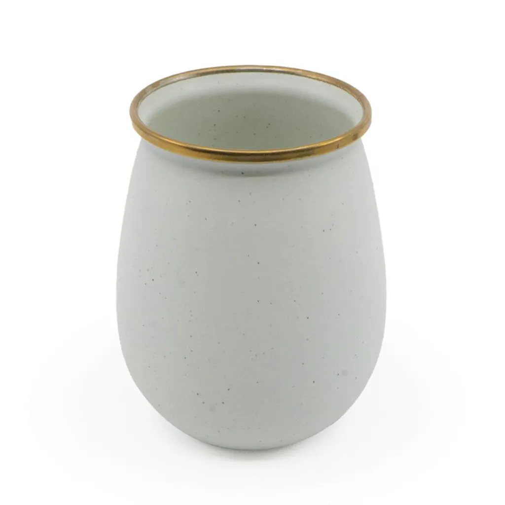 De Barebones Emaille zijn geëmailleerde bekers, verkrijgbaar in sets van twee. Ze zijn voorzien van roestvrijstalen randen met een rustieke antieke afwerking. Hun ronde vorm ligt comfortabel in de hand en maakt ze ideaal voor het genieten van een glas wijn of ijsthee met een verfijnd ontwerp.