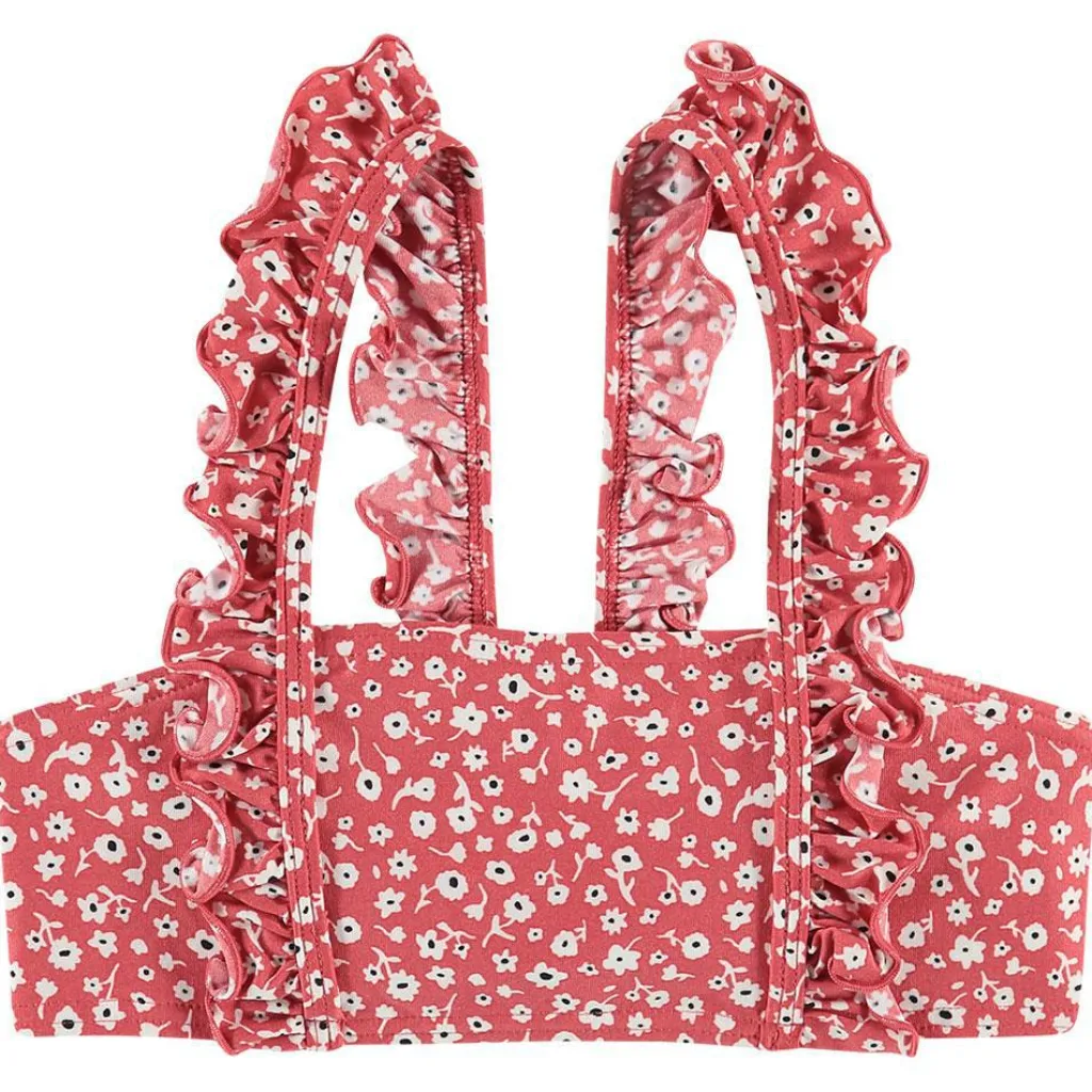 De Beachlife Ditsy Flower ruches mini bikini top voor jonge kinderen heeft een leuke, zomerse uitstraling. Door het materiaal beweegt deze bikini top van Beachlife goed mee wat erg fijn is tijdens het spelen.