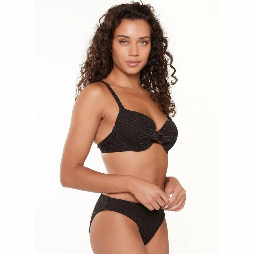 Het LingaDore 7201B bikinibroekje voor dames is uitgevoerd in het zwart, maar door gebruik van lurex zit er een subtiele glitter in dit broekje.