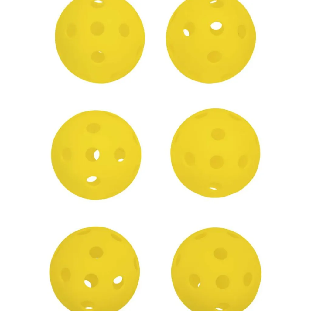 Deze Pure Pickleball ballen zijn geschikt om indoor Pickleball mee te spelen en er zitten 6 stuks in de verpakking. Elke bal heeft 26 gaten, een diameter van 72 millimeter en weegt 23 gram.