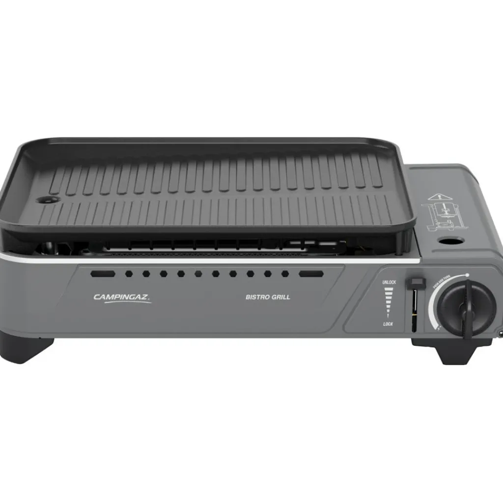 Dit Campingaz Bistro Grill kooktoestel heeft een compact formaat, waardoor u op de camping, op uw kleine balkon of heerlijk thuis makkelijk kunt grillen. Het kooktoestel is binnen 6 minuten verwarmd en heeft een antiaanbaklaag. Door het dubbel veiligheidssysteem wordt de gasstroom onderbroken bij oververhitting. De grill werkt op CP250-gaspatroon.