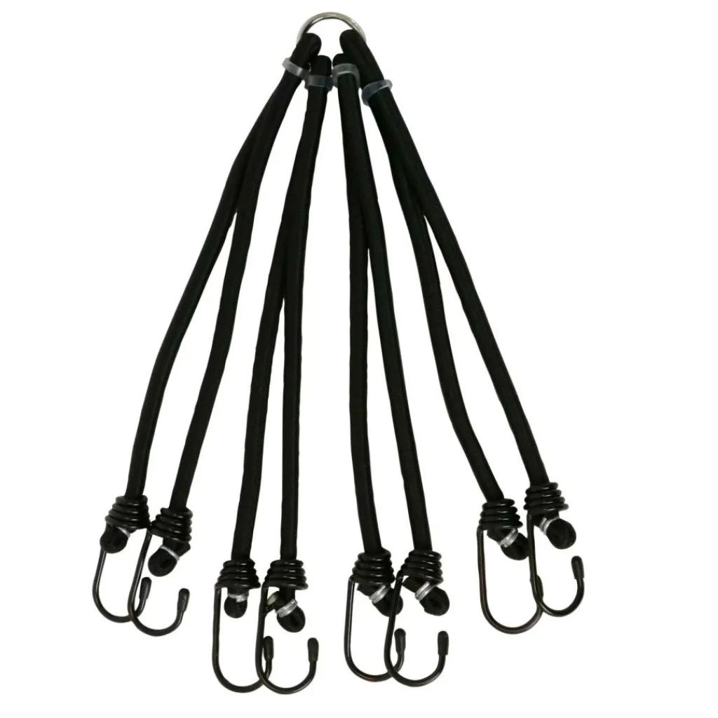 De Carpoint bagagebinder bestaat uit 8 elastische delen met een lengte van 30 tot 55 centimeter en een diameter van 8 millimeter. deze binder is handig voor het gebruik in de auto, op een fiets of in huis. De metalen haken zijn allemaal geplastificeerd.