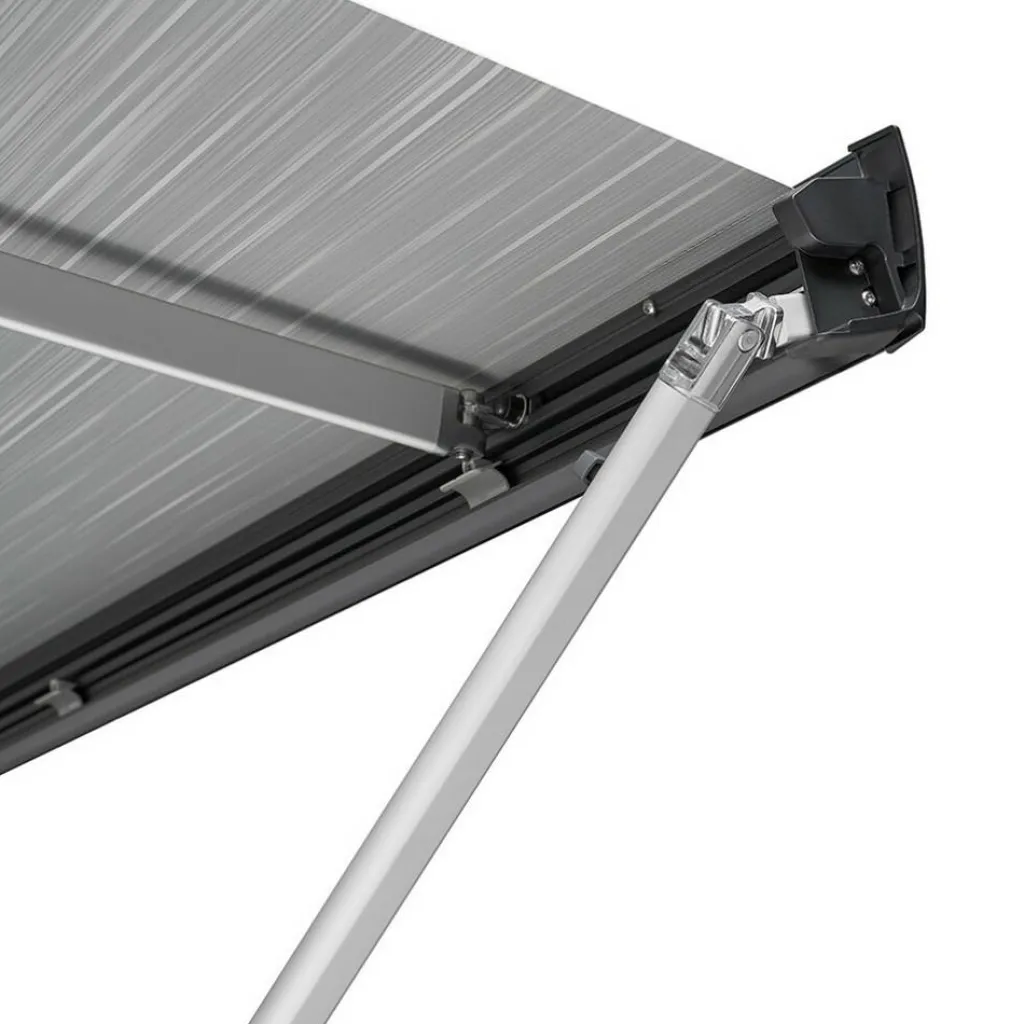 De Thule Omnistor 4200 cassetteluifel biedt extra schaduwcomfort. Met zijn eigentijdse design is deze luifel een toevoeging aan moderne campermodellen, naadloos passend aan de zijwand van uw voertuig. Dankzij de telescopische zwengel is het opzetten en afbreken van de luifel eenvoudig. Het afdichtrubber met geïntegreerd afvoersysteem voert regenwater automatisch af. Het rolbuissysteem kan gemakkelijk worden ingesteld voor een naadloze sluiting van de cassette. Het slimme innovatiesysteem ontgrendelt de ovale steunpoten verticaal van de geleiderail, waardoor het risico op voertuigbeschadiging minimaal is. De draagarmen zijn ontworpen om zelfs bij montage van slimme panelen en tenten hogere belastingen aan te kunnen.