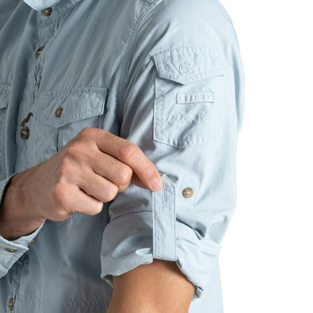 Het NosiLife Adventure III overhemd van Craghoppers is gemaakt van 100% gerecycled polyamide met polyester trim en deels gerecyclede ritsen. Dit overhemd biedt handige functies zoals een vochtafvoerende mesh koelkraag, zonnebrilhangerlus, UPF 40+ zonbescherming en 5 zakken. Waarvan onder andere 1 grote met ritssluiting, 1 verborgen Zip’n’Clip beveiligingszak en 1 op de mouw met drukknoopsluiting.