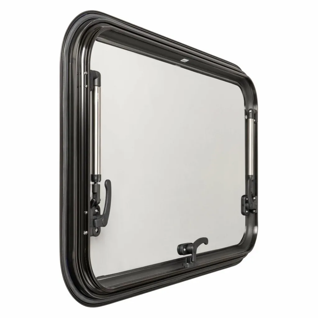 Het DWS Camping Klapraam transparant bestaat uit een binnenkader en een buitenframe die met schroeven aan elkaar zijn bevestigd. Het binnenframe is gemaakt van sterk aluminium en bovendien voorzien van een hor en een verduisteringsgordijn. Zo houdt u de insecten buiten en kunt u de lichtinval reguleren. De raam kan traploos in verschillende standen opengezet worden dankzij de telescopische armen. Bovendien kan het raam van binnen afgesloten worden met de veiligheidsgrendel. Tijdens het monteren kunt u eenvoudig het meegeleverde inbouwframe gebruiken als sjabloon.