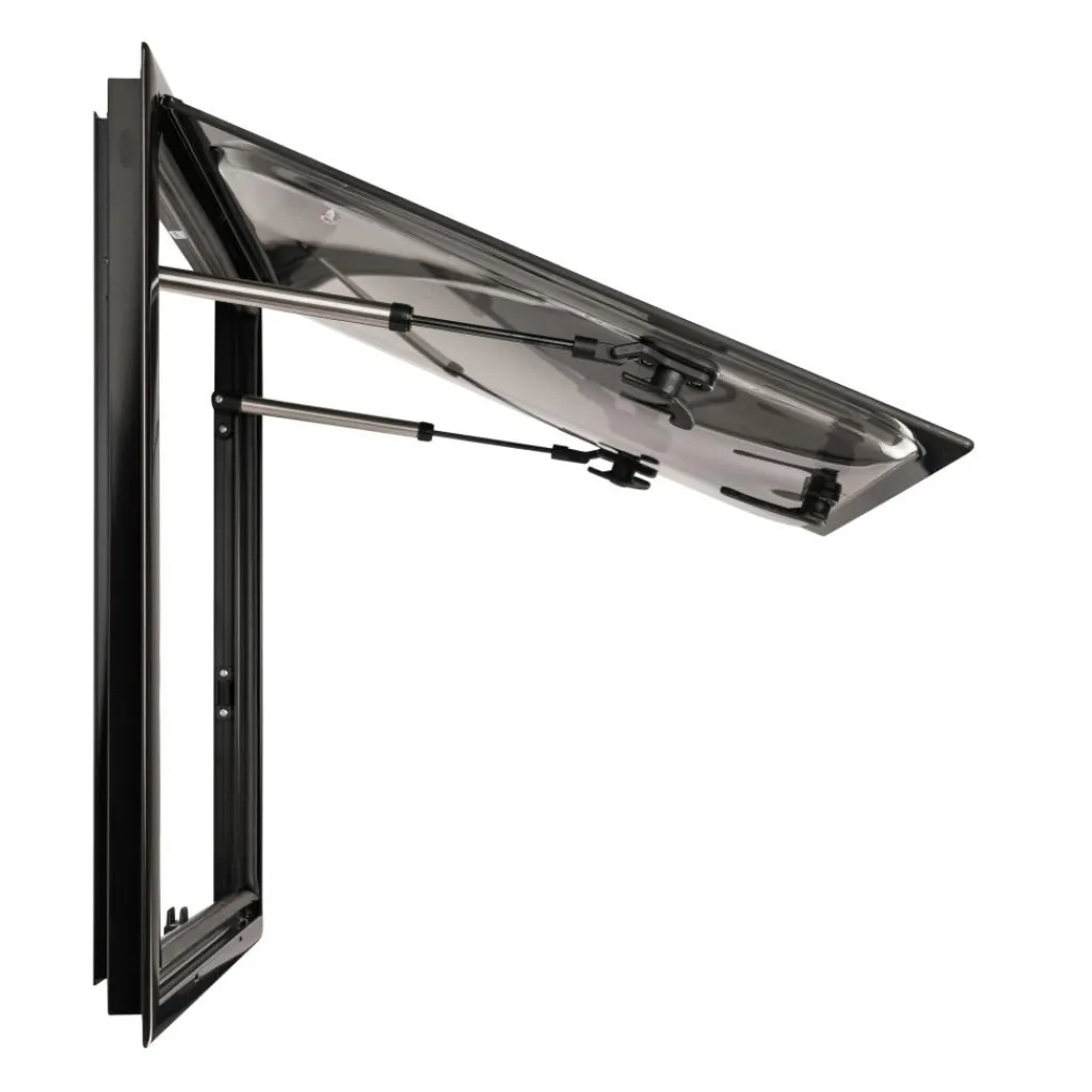 De DWS Camping Rechthoekig klapraam beschikt over holle dubbele beglazing van acryl met verhoogde buiten- en vlakke binnenoppervlakken, wat zorgt voor uitstekende isolatie en UV-bestendigheid. Het frame van aluminiumlegering met poedercoating biedt hoge sterkte. De uitschuifbare opening blijft in meerdere posities staan en heeft een handige handgreep met 2 sluitposities. Dit raam is geschikt voor wanddiktes van 30 tot 39 millimeter. Installatie zonder boren met behulp van een inbouwframe, boren in het voertuig is niet nodig. Het raam wordt geleverd met een ingebouwde insectenhor en verduisteringsgordijn. Om het klapraam te voorzien van een waterdichte afwerking raden wij het gebruik van de Dekalin Dekaseal 8936 kit aan.
