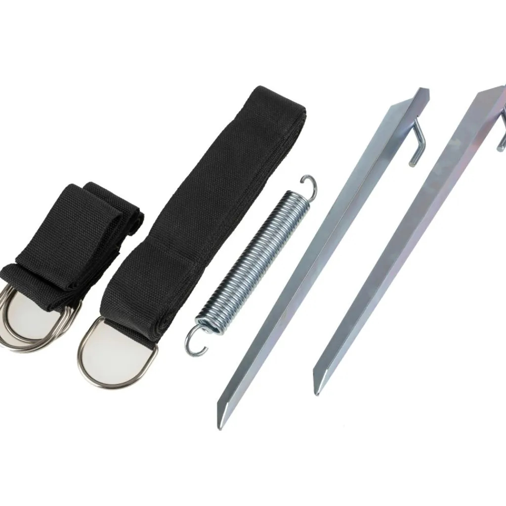 De DWS Camping Universele stormband set is 11 meter lang en is tot 1,5 meter extra verstelbaar. Met deze set zet u uw tent extra stevig vast. De set bestaat uit haringen, banden en een veer.