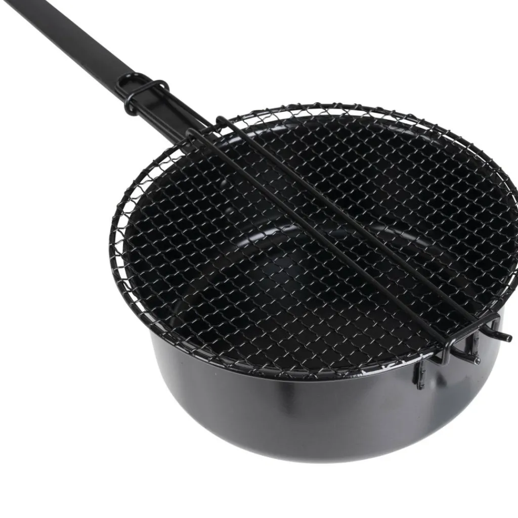 De Esschert Design Popcornpan houdt u eenvoudig boven open vuur waardoor uw eigen mais gepoft wordt tot popcorn. Deze popcornpan heeft een rooster aan de bovenzijde, op deze manier kan de popcorn niet uit het pannetje springen tijdens het poppen. Dankzij het geïntegreerde oog in de steel kunt u de pan eenvoudig ophangen als u deze niet gebruikt.