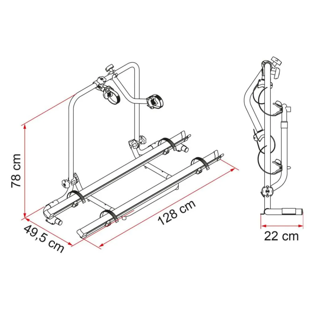 Deze fietsendrager heeft standaard ruimte voor het plaatsen van twee fietsen. Door het toevoegen van een 3e en 4e rail kan dit aantal worden uitgebreid tot vier. Zo maakt u optimaal gebruik van de ruimte die de garage van een camper u biedt.