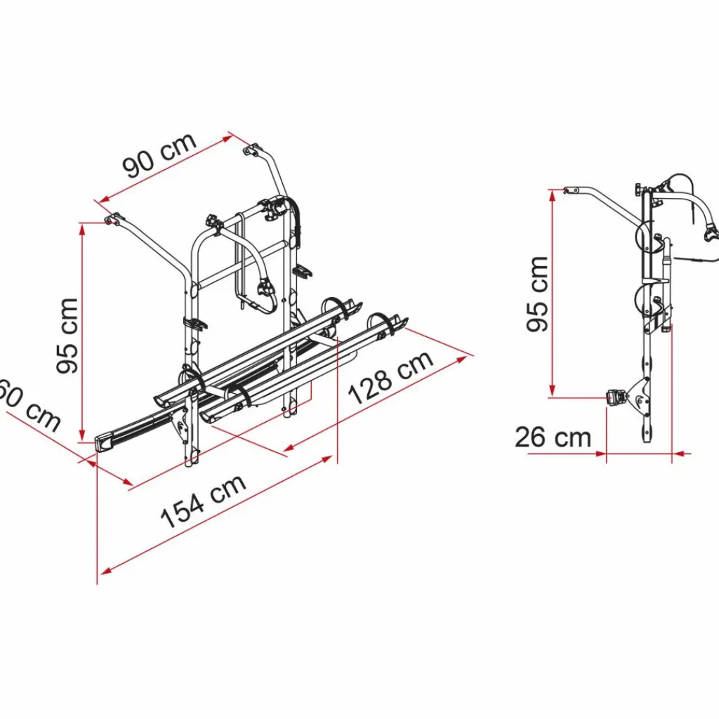 Deze fietsendrager is geschikt voor het vervoeren van 2 fietsen of 2 E-Bikes en kan worden uitgebreid om maximaal 4 fietsen te dragen dankzij het stevige stalen legbord. De bovenste gevormde beugels zijn ontworpen om perfect op het voertuig te passen, terwijl de gekartelde onderste balk zorgt voor een betere hechting aan de achterklep, wat extra stabiliteit biedt tijdens het rijden. Om ervoor te zorgen dat de fietsen veilig op hun plaats blijven tijdens het transport, wordt de Carry-Bike geleverd met een Bike-Block bevestigingssysteem. Bovendien is de Rail Plus wielgoot opnieuw ontworpen voor grotere torsie- en buigsterkte, waardoor de duurzaamheid en veiligheid worden verbeterd. De Fiamma Carry-Bike Mercedes V Class Premium fietsendrager wordt eenvoudig gemonteerd op de achterklep van het voertuig, waardoor het een praktische en efficiënte keuze is voor elke fietsliefhebber die op zoek is naar een betrouwbare en gebruiksvriendelijke fietsendrager.