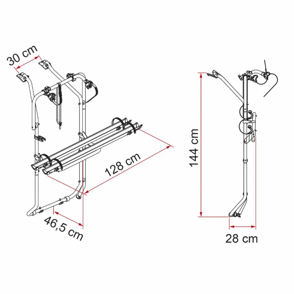 De Fiamma Carry Bike fietsendrager is ontworpen voor de Volkswagen T5 en T6 modellen met dubbele achterdeuren. Het installatieproces is uiterst eenvoudig dankzij de meegeleverde beugels, en vereist geen boren. Voor extra gemak en veiligheid is deze fietsendrager voorzien van het Bike-Block Pro S systeem, dat bekend staat als het sterkste, snelste en veiligste systeem van fietsendragers. De fietsendrager is vervaardigd uit aluminium en afgewerkt met zwarte kappen.